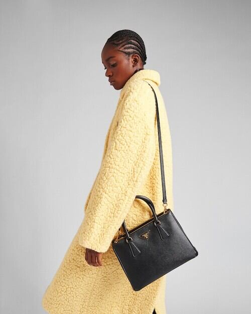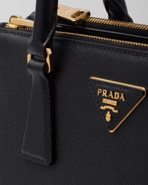 ■ PRADAを象徴するレザートライアングルのメタルレタリングロゴ